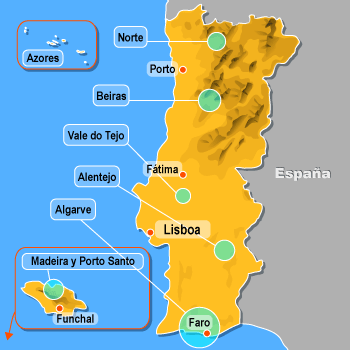 Su territorio continental es atravesado por su río principal, el Tajo, que divide el país en dos por la mitad.